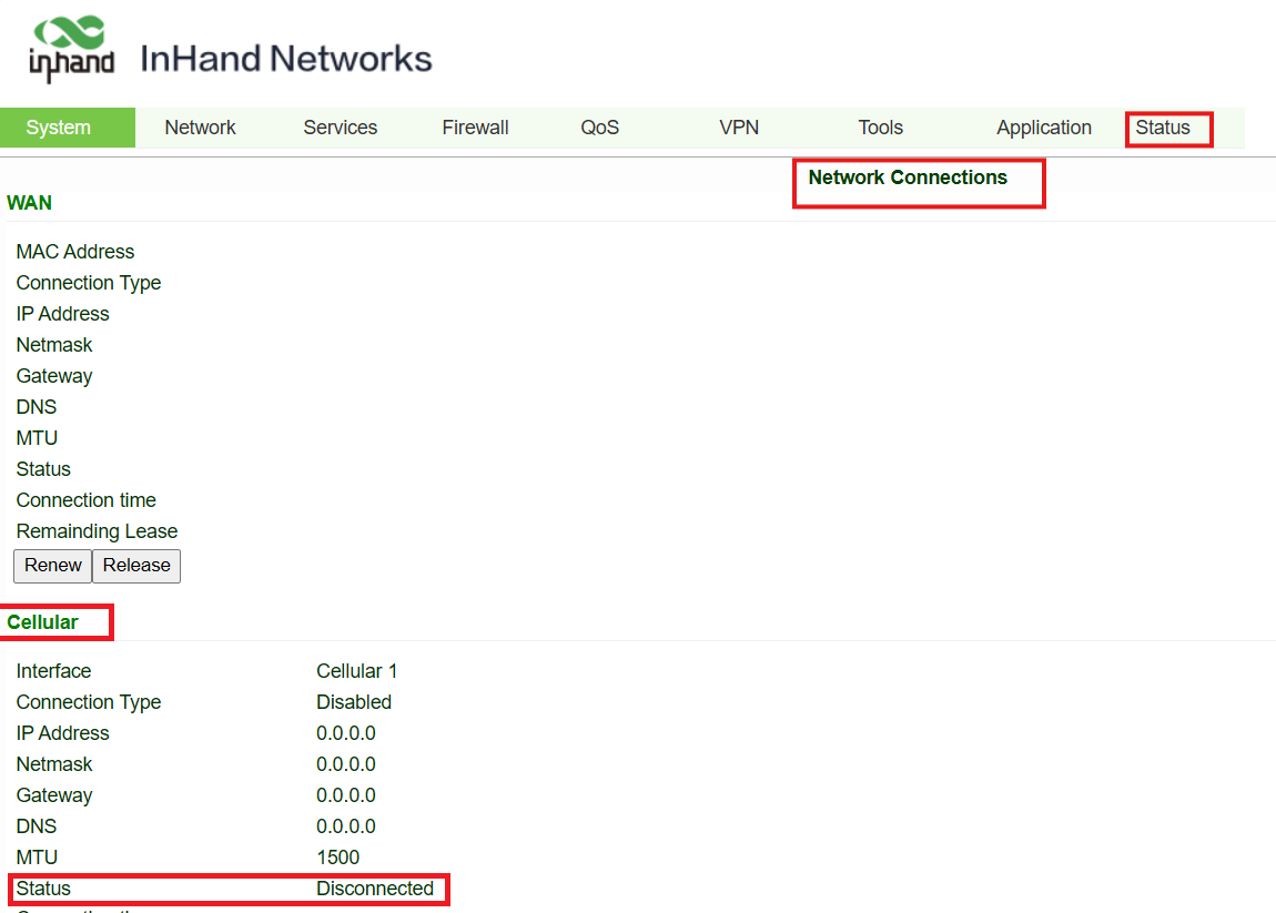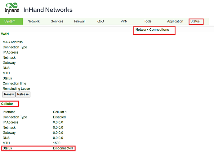 - However, go to Status=>Network Connections, the Status of Cellular is "Disconnected"
