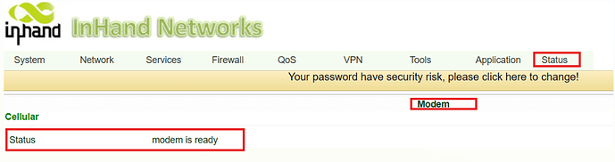 - At Status=>Modem page, the Status is "modem is ready"
