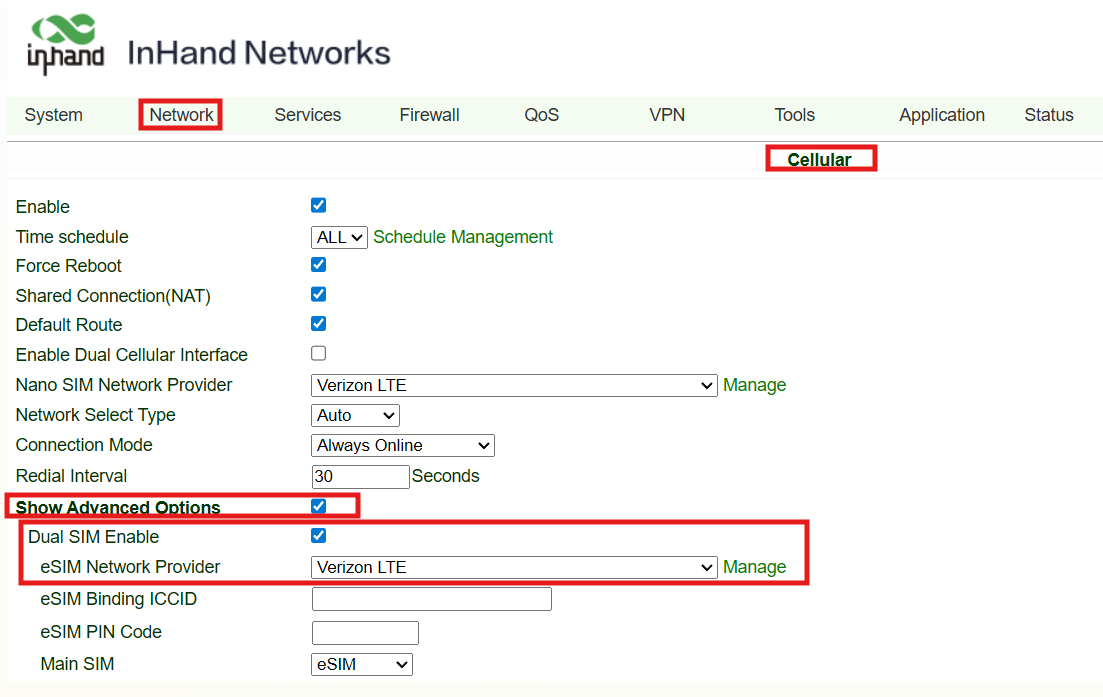 - If eSIM(embedded SIM) is used, please set eSIM Network Provider to Verizon LTE: