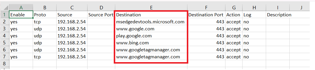 6. From the download .csv file, you can find all the domains that were accessed by the browser: