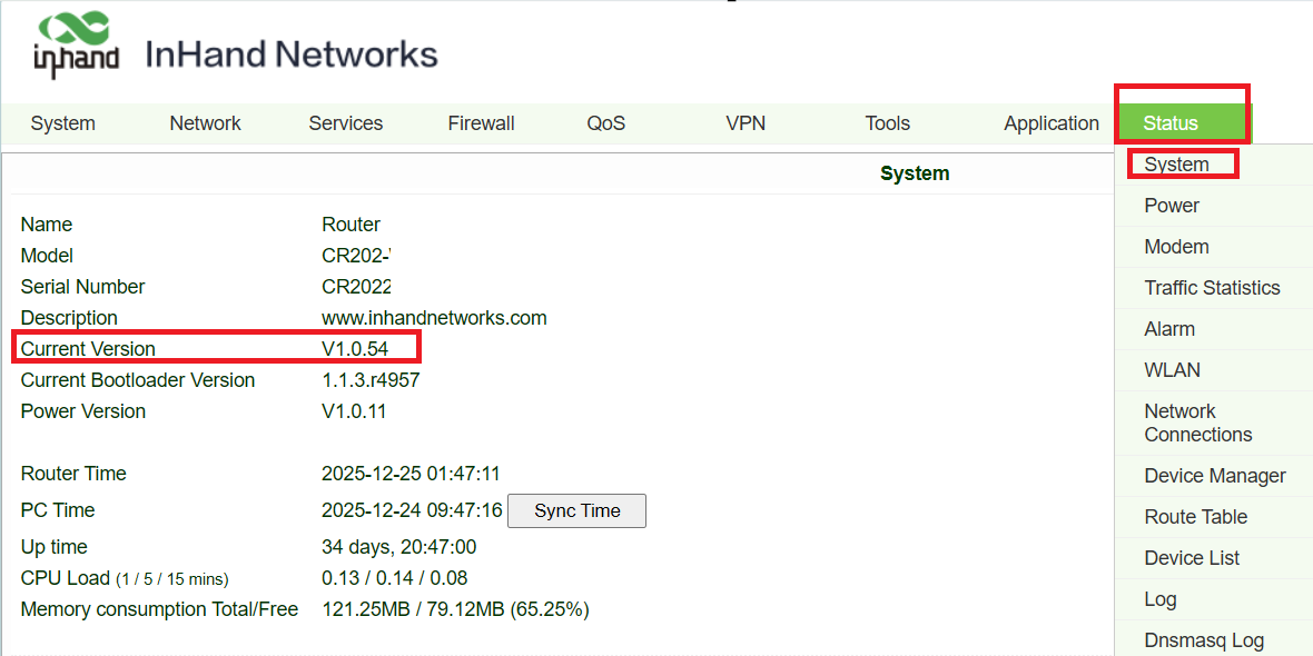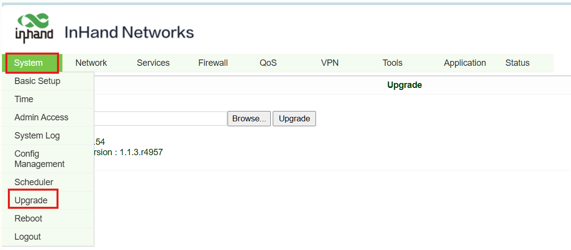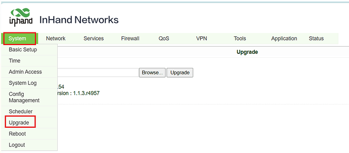 5. Go to System=>Upgrade page: