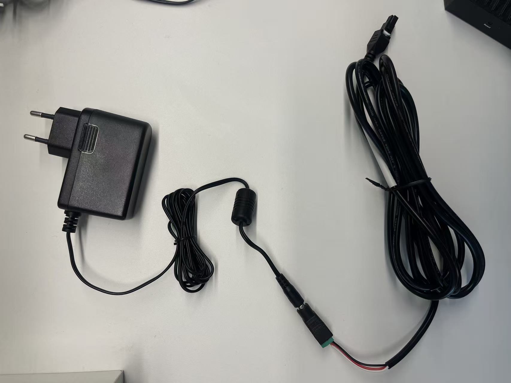 - Combine the Power Adpater+DC Connector+4-pins Power cable. Then Plug the 4-pins Power cable's 4-pin side into VG710's power input interface, plug in the Power Adapetr.