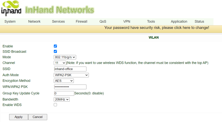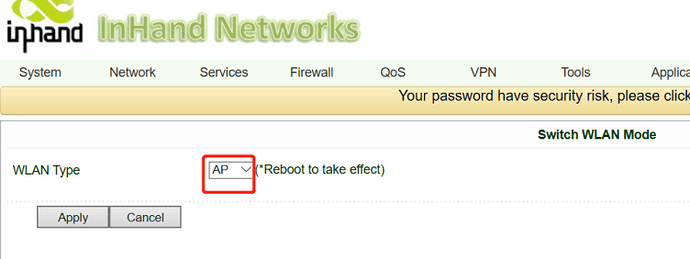 1) Select AP mode. Go to Network-> Switch WLAN Mode. The default mode of WLAN is AP. After the switch of mode, it needs a reboot to take effect.