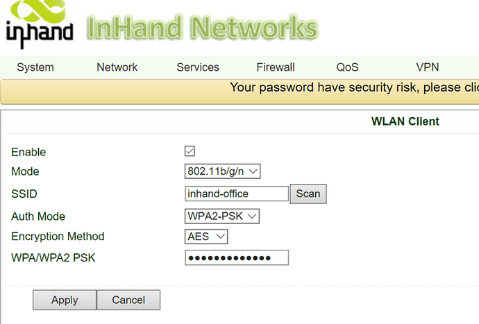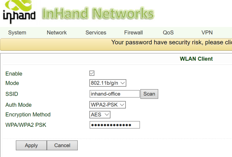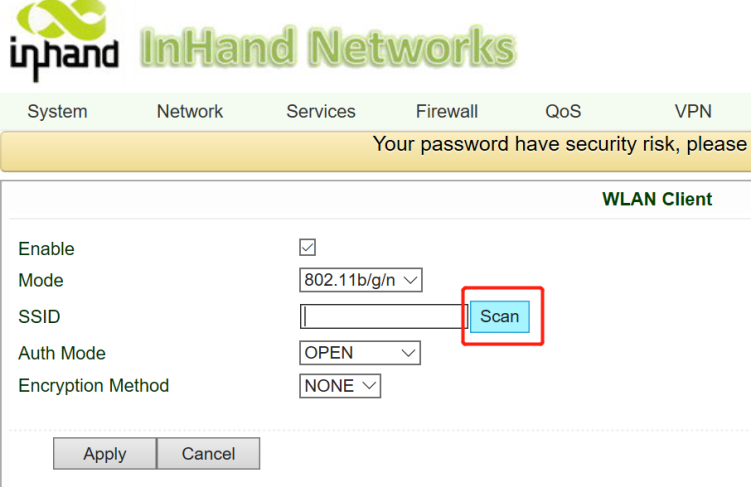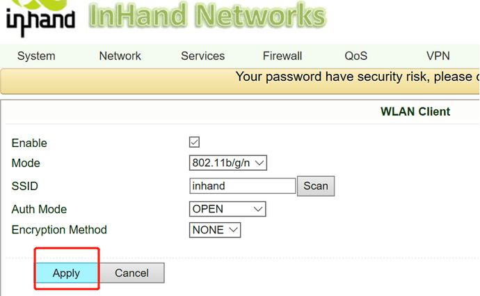 4) Go to Network->WLAN Client, apply the default configuration first.