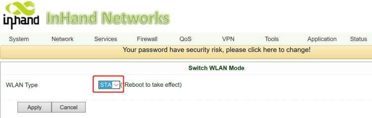 1) Go to Network ->Switch WLAN Mode, select STA.