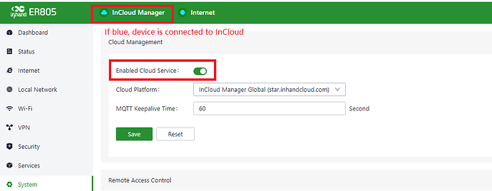 1. Go to SystemàCloud Management. Enable Cloud Service should be checked by default, if not, please check it.