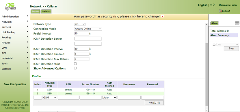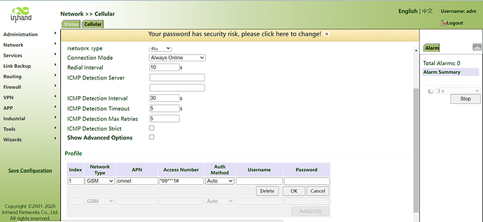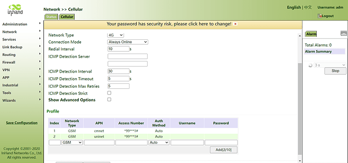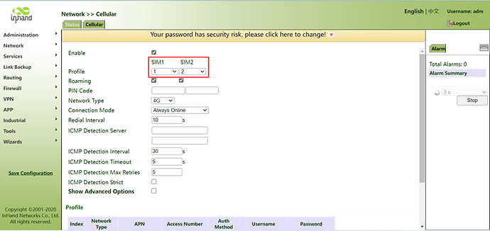 4. (optional) Click the button Add to add Profile for different APN. This is for multiple SIM card profiles.