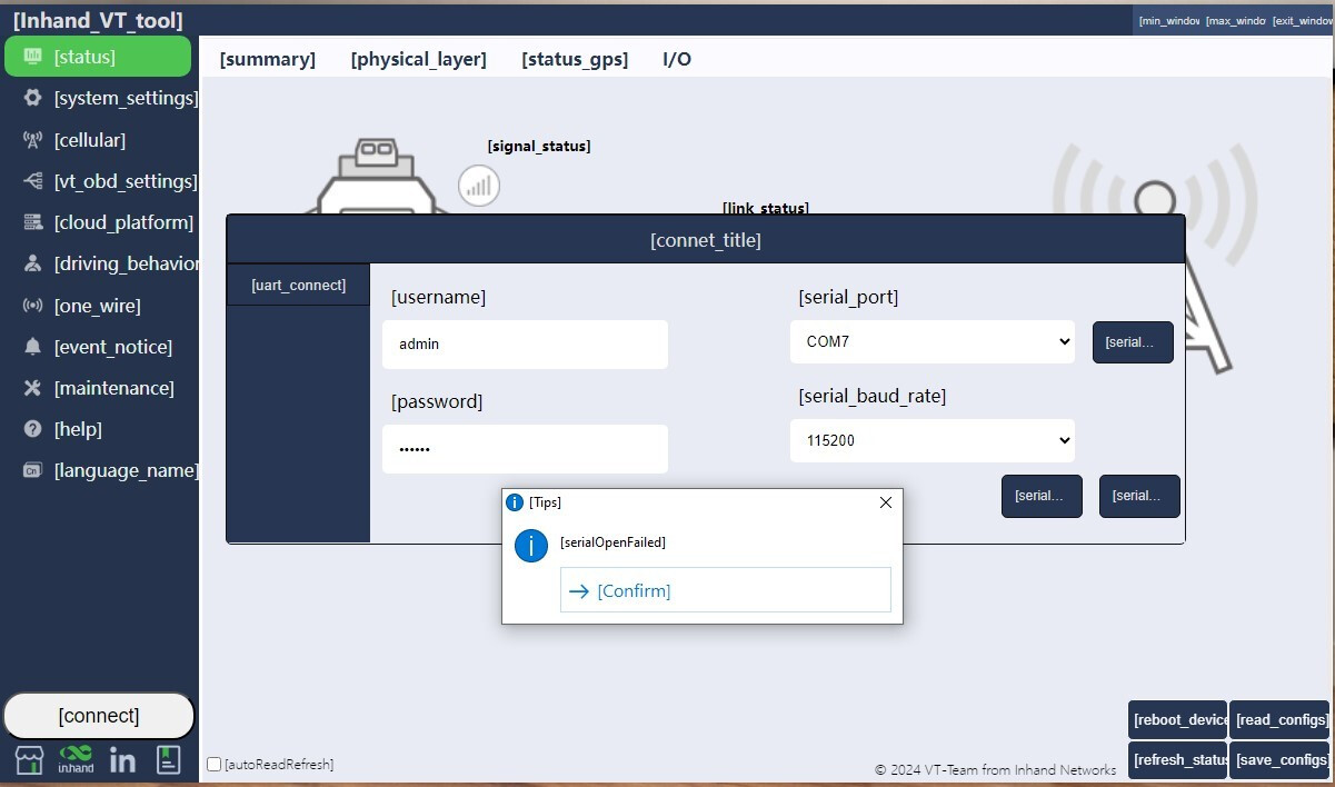 What should you do if you encounter the "serial Open failed" error when using the Config Tool?